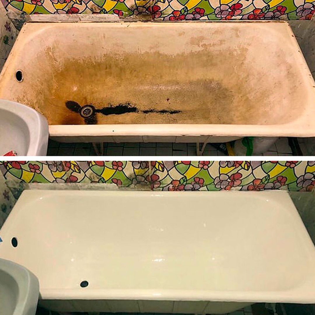 Наконец не нужно менять ванну — эмаль обновила её полностью. Белый цвет держится.