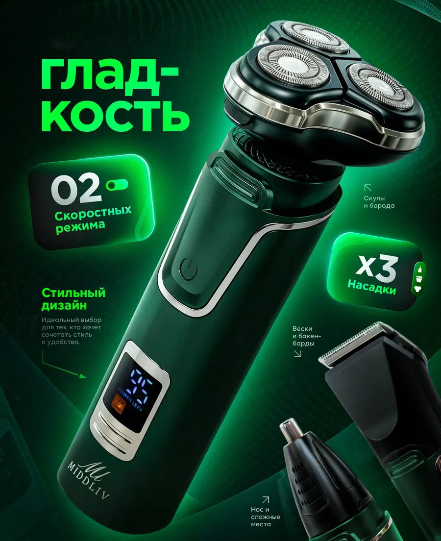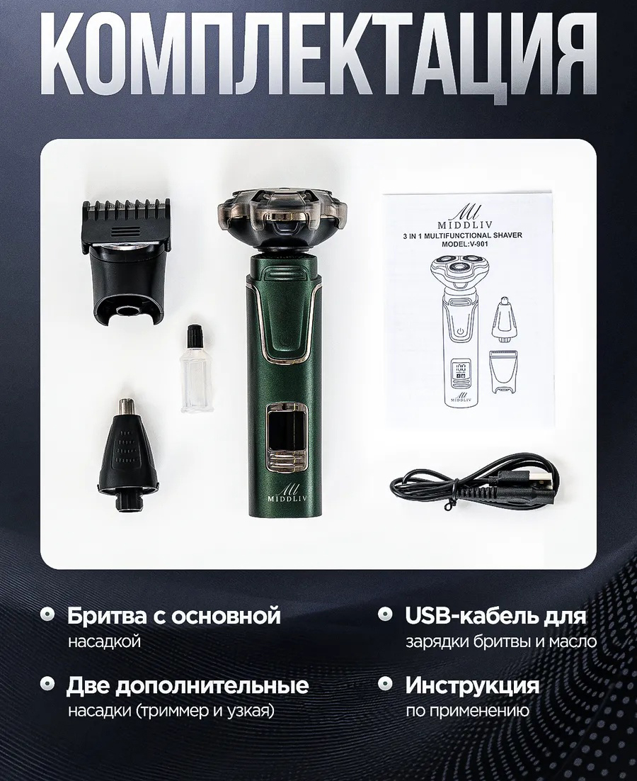 Электробритва для стрижки волос 3 в 1 — это универсальный электро прибор, который станет незаменимым помощником для мужчин, стремящихся к самостоятельному уходу за собой. Эта электробритва мужская сочетает в себе функции бритвы, триммера и машинки для стрижки волос. Она обеспечивает комплексный уход за лицом и телом благодаря острым лезвиям и статичной головке, что гарантирует тщательное бритье без раздражения даже на чувствительной коже.